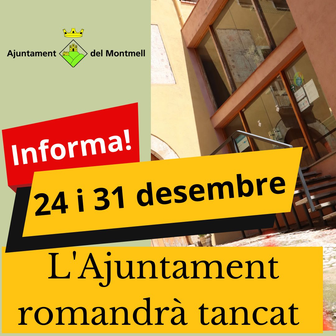 24 i 31 de desembre L’Ajuntament romandrà tancat